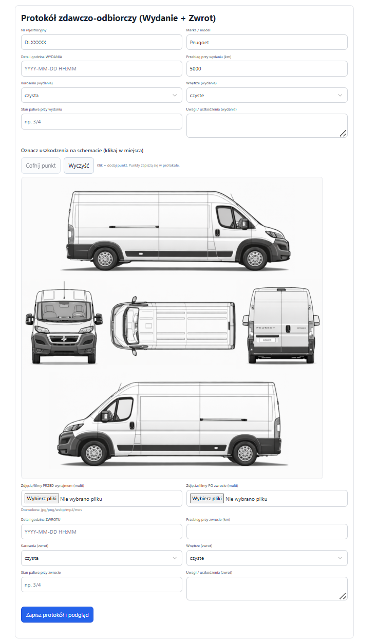 Ostateczna treść umowy oraz protokołu jest generowana i podpisywana przy wydaniu pojazdu.